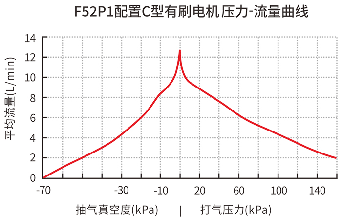 5、中大流量高压微型气泵F52系列,峰值流量:15-22L/min,平均流量为:10-15L/min;MAX正压:120~150kPa,负压还能达到-70kPa,属目前新为诚DC微型真空泵中,正压MAX产品!
