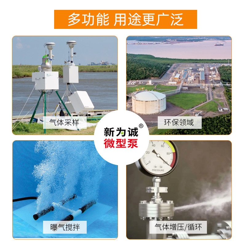 2.新为诚12V微型气泵FCG,在保证较低成本的同时,兼顾部分工业级品质+消费级价格,保证了较稳定的参数:峰值流量1.5-8L/min,平均流量1-5L/min;MAX正压19-60kPa,涵盖气体采样、气体循环、增压、搅拌、曝气等场景要求;
