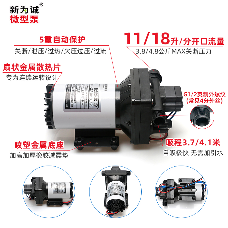 新为诚无刷小型水泵CSP-XW,系新一代无刷微型自吸压力水泵,采用品质无刷大力矩电机,克服了中高压、大流量微型水泵往往只能采用有刷大力矩电机、间断使用等瓶颈,可长期连续运转,大流量中压力,极低的电磁干扰!